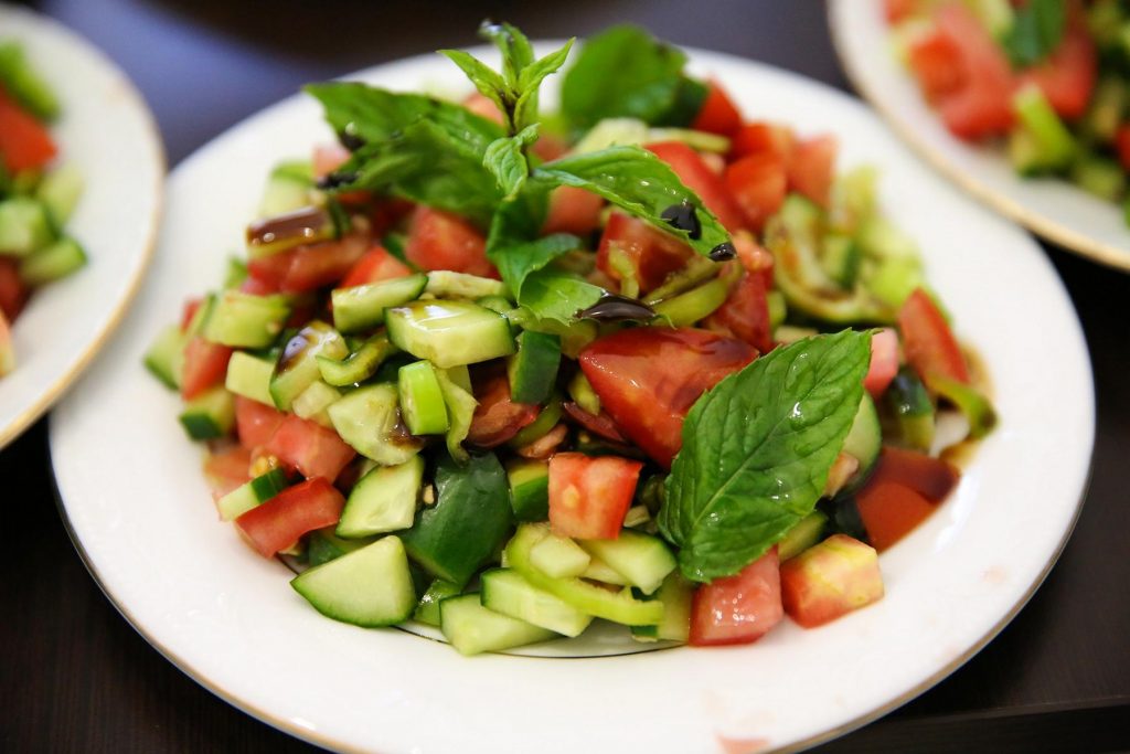 Warum sollten Salatblätter auf der Salatbühne die alleinige Aufmerksamkeit auf sich ziehen? Fülle eine große Schüssel mit knackigen Salatblättern und einer Handvoll frischem Estragon, gebe etwas Tomate, Gurke und Granatapfelsirup hinzu und beträufel alles mit Zitrone und Olivenöl und du hast einen schnellen Salat, der bestimmt viele Freunde findet.
