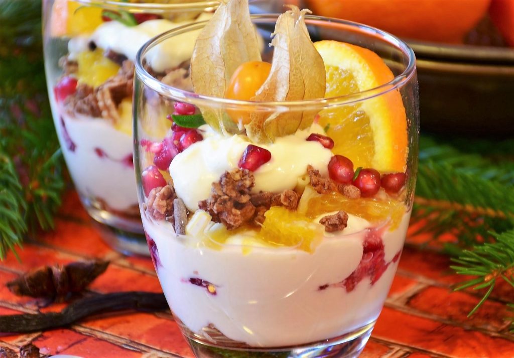 Granatapfelsirup passt gut zu herzhaften Speisen, aber was ist mit Dessert? Wie wäre es damit einen Obstsalat zu würzen oder einen Spritzer auf einen Vanillepudding zu geben?